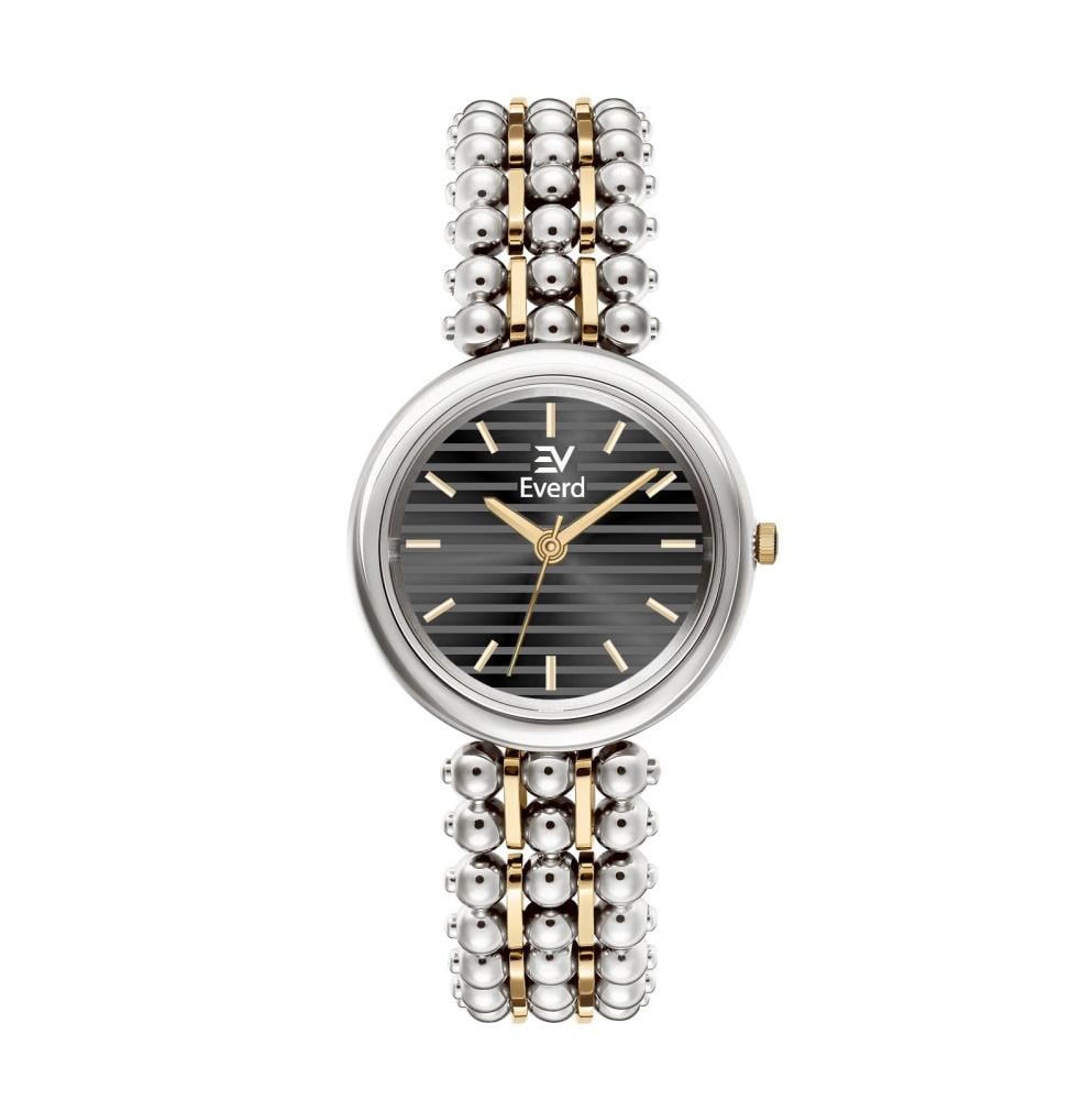 ساعه نسائية ماركة ايفرد ذهبي وفضي ميناء اسود