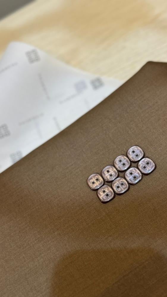 8 أزرار من الصدف الطبيعي محفور عليها شعار الماركة.