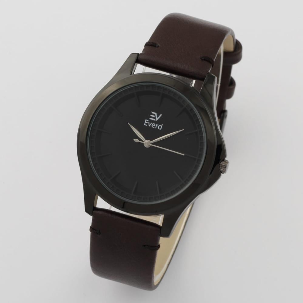 ساعه رجاليه ماركة ايفرد جلد بني محروق ميناء اسود إطار اسود