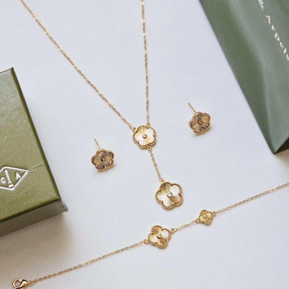 طقم سلسال واسوره وحلق ماركة فان كليف ذهبي مع الملحقات