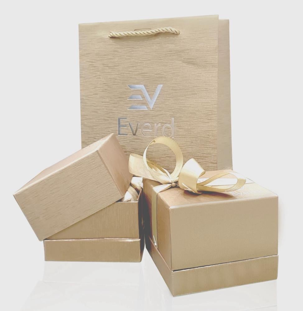 تأتي هذه القطعة الفنية في علبة تنبض بالأناقة والرقي، مع كيس كرتوني يحمل شعار إيفرد بخطوط فضية، لتُعبر عن شخصيتك الفريدة واختيارك المتميز.