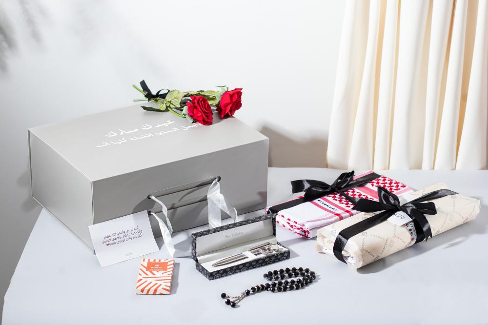 شماغ جفشنني 2024قماش جفنشي اختيار اللون الأبيض او السكري قلم وكبك سيكلوسبحه حجر بكج فاخر مع عبارة مميزه للعيد